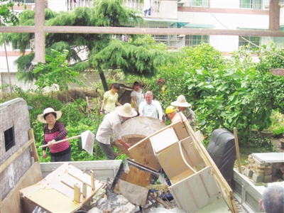 近日,婺城执法局乾西中队队员随同西苑社区的工作人员和各个小区的物管人员对工贸区鸿欣苑小区、龙华小区、万安家苑、西湖花园等多个小区楼道口、绿化带里乱堆放杂物进行了清理。