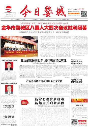 金华市婺城区第八届人民代表大会第四次会议依法选举盛奇兵为金华市婺城区第八届人民代表大会常务委员会副主任,吴建林、俞文伟、洪健康为金华市婺城区第八届人民代表大会常务委员会委员。