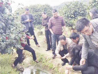 3月24日,海宁市卫生局工作人员来到婺城区交流学习血吸虫防治经验,并来到血吸虫监测点竹马乡白竹村实地查看,通过运用镊子、灭螺袋以及查螺框等工具作业,互相学习借鉴规范查螺方法。此次活动不仅互相交流学习了春季血防查、灭螺工作经验以及血吸虫病防治经验,也进一步提高了查螺业务人员的能力和查螺工作质量。
