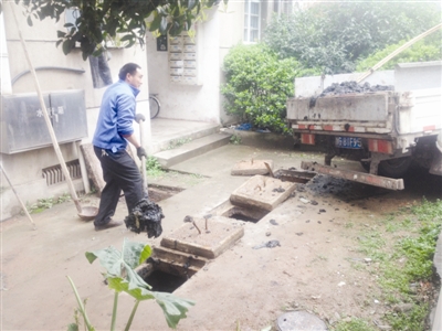 近日,城东街道旌孝街社区对辖区联建房1幢的化粪池进行疏通。据了解,联建房1幢是老小区,没有物管,设施陈旧、老化,化粪池已多年未进行疏通,导致化粪池溢出。 记者 汪胜 摄