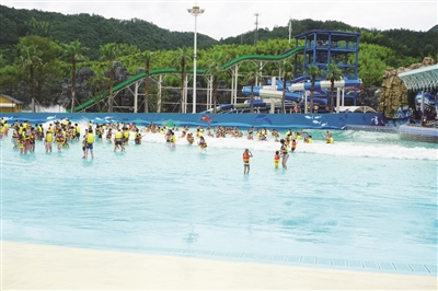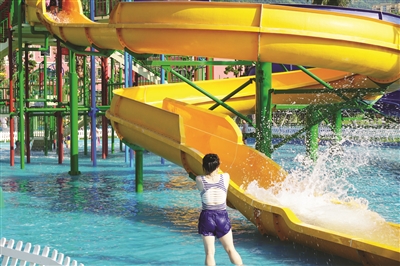 海啸池、超级大回环、惊险眼镜蛇、急速四虹滑道、漂流河……一波波的水浪、垂直而下的速度,惊险刺激的游乐项目让大家放声尖叫不已,好像要把这段时间以来的闷热烦躁情绪统统发泄个干净。记者了解到,从开业至今,巨龙雅泉·水世界平时平均接待游客量有2000人,高峰时期可达5000人,针对游客需要,整个水世界的开放时间还分为日场和夜场。接下来,在暑假这几个月里,水世界还将陆续开展仲夏消暑夜、电音之夜、仲夏露营、BBQ、荧光潮趴等娱乐项目,为人们带来不一样的欢乐体验。