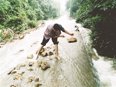 “别看这里环境这么好,遇到恶劣天气,这些优势都会变成劣势。”马畈坑村支书袁洪言指着路边横七竖八倒着的毛竹告诉记者,这些都是过去大雪天气留下的“产物”,往年冬天只要一下大雪,积雪就会把路边的毛竹压倒堵在这条小路上,今年汛期期间,这条小路更是遭受了严重的破坏。袁洪言拿出手机,把他在汛期时拍下的照片给记者看,“我记得7月3日那天,天上的雨水像是泄洪似的往下倒,山上的泥土石块都冲进村子里,而进村路边的石块也被冲到路面上来,路边的一座石桥也被冲毁,影响了交通通行。我们只能一边清理石头,一边冒雨走进村子。”袁洪言印象颇深地回忆道。