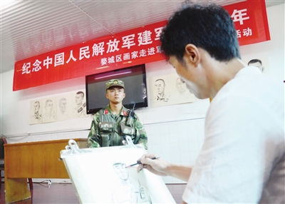 此次活动共完成30幅素描肖像画以及6幅书法作品的创作,所有作品均赠予战士和部队。随后,画家们受邀对战士们进行黑板报创作指导。艺术家们以特殊的方式为官兵庆祝“八一”建军节,“画”出人民子弟兵的精神风貌和军人气质,收获了战士们的一致好评。 见习记者 吕璐 摄