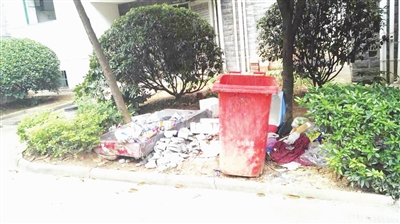 在新狮街道东方前城小区1幢2单元、3单元前的垃圾桶边上有垃圾未清理,小区内的垃圾桶基本无盖。在25幢1单元门前有自行车停进绿化带,26幢三单元前建筑垃圾,22幢三单元门前垃圾不入桶。9幢1楼门口、店梯外的墙面、水管有少量“牛皮癣”,门前绿化带内有成堆建筑垃圾。在小区多处绿化带内有许多枯枝树叶,在一些区域内,已大面积覆盖。
