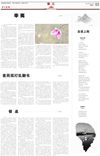 等辛夷花落,百花万草才悟得春风。杨柳青青,桃花怒放,鸟儿鸣啼,溪水哗啦。当万物苏醒,百花争艳之际,辛夷安然入睡,静谧无声。夜幕降临,魑魅魍魉浮现,辛夷树干笔挺耸立,整理完落下的每一朵花瓣,安静地反哺于自己的根系,化作肥沃的土壤,在花谢的蒂部抽出翠绿的嫩芽,舔却伤疤,轻轻抚平曾经的创伤,无需喧哗,无需嚎叫,无需挣扎,甚至无需提及曾经的华丽。