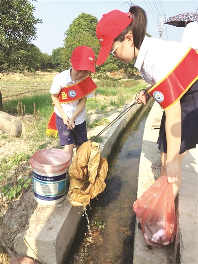 与此同时,金师附小的孩子们也顶着烈日开展了“小手拉大手 红领巾护水在行动”暑期实践活动。跟着家长学习剿劣知识,沿河寻找劣V类水,开展水源环境整治行动,并向市民们发放倡议书,积极宣传剿灭劣V类水知识……孩子们用实际行动为剿灭劣V类水贡献自己的一份力量。