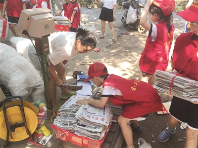 这几天,金华市环城小学在开展“废纸换图书,同筑蓝天梦”活动,鼓励孩子们在暑期走进社区,以中队为单位,兵分多路,在老师的指导下,开展垃圾分类实践活动。