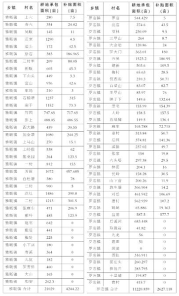 经村申报,乡镇审核,农林局审核汇总,现将雅畈镇、罗店镇2015年、2016年耕地地力保护补贴面积予以公示。公示期2017年8月21日——8月27日,如对公示情况有异议,可通过来信、来电、来访等形式反映情况。