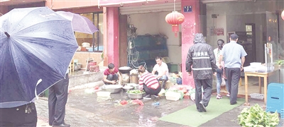 事件还原:婺城区青春路一带有不少小吃店,倾倒生活污水之事便时常会有发生。