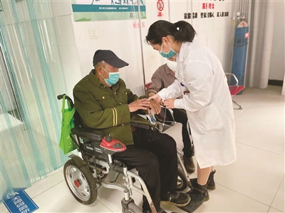 到接种点时,志愿者们的汗水已浸湿口罩。医务人员严格按照疫苗接种流程,对老人进行了健康询问,核查各项指标均符合接种要求后,对老人进行疫苗接种,并在接种后留观30分钟,整个接种过程非常顺利。