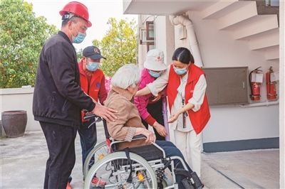 当天下午,西市街商圈联合党委副书记胡槐皎和工作人员一起来到88岁老人詹丹红的家中。由于行动不便,詹丹红一直没有前往医院接种疫苗。胡槐皎得知情况后提议:“我们把老人背下楼,然后用轮椅推去就近的接种点,为老人接种疫苗。”