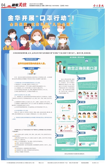 为有效阻断疫情传播,近日,金华全市开展“全民佩戴口罩”专项推广行动(简称“口罩行动”)。戴好口罩,保持距离!