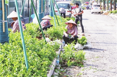 近日,记者在东市北街道路提升改造项目现场看到,绿化工人正在用挖土机、洒水车等大型机械植树,绿化带内苗木移栽和修剪同时进行,现场一派忙碌景象。据了解,东市北街提升改造项目长约3800米,以二环北路至环城北路双向六车道改造为主,结合道路绿化提升、夜景亮化、口袋公园打造等,计划7月完工。记者 黄诗媛 摄