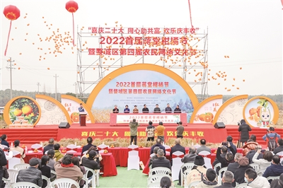 2022年,首届蒋堂柑橘节暨婺城区第四届农民网络文化节在蒋堂镇许里村举行。现场,在农场红美人种植基地内,几位主播正拿着手机为枝头金灿灿的红美人吆喝,用网络的力量助力乡村振兴。