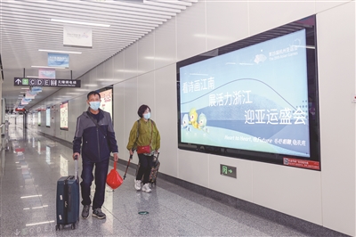 日前,记者走访交通客运站、市区多条主干道、公园、广场等,发现许多公益广告都已更换上“迎亚运”的字样,浓浓的亚运味儿扑面而来。在轻轨站、BRT站等地,乘客们被带入浓浓的亚运氛围中,广告宣传灯箱展示着亚运系列的公益广告,乘客们时不时驻足欣赏,共同期待亚运的到来。