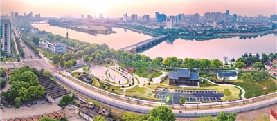 近日,在城区河盘桥附近通过无人机鸟瞰婺江北岸,河盘翠舞公园(河盘桥—河盘文化中心段)和金华铁路文化公园(第三期)两处公园已初现风貌。河盘翠舞公园建筑总面积约10万平方米,预计今年年底全部完工。此次建成开放的区域为以“水舞”为主题的入口广场与以“活力运动”为主题的河盘文化中心。金华铁路文化公园(第三期)总面积约1.56万平方米,建设内容包括公园地下车库、修缮原有的几栋工业遗存历史建筑、绿化景观提升等。 近年来,婺城区持续推进城市公园建设,打造绿色生态门户,让市民领略到城、水、绿共融的“水墨婺城”。