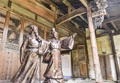 在婺城,有一座美丽古村,与唐诗颇有些渊源。“入乡不杖归时健,出郭乘轺到处夸。儿著绣衣身衣锦,东阳门户胜滕家。”这首《送滕庶子致仕归婺州》就是白居易为杨塘下村滕氏始迁祖滕珦所作。
