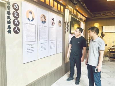 在滕氏宗祠(种德堂)的北侧,就有一座南阳滕氏家风家训馆,在清朝时这里曾是一间私塾,当地人称其为纯阳书庵。步入其中,迎面可见书有“南阳滕氏家风家训馆”的屏风,进入正厅,里面详细介绍了滕珦和滕氏历代名人的生平事迹,以及滕氏名人的优秀家风故事。