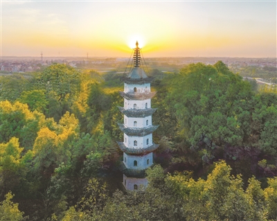 | 洞山塔 位于白龙桥镇古方村东北白沙溪畔的洞山上,因山得名,塔为六面七级,是一座中空楼阁式砖塔。 卓德强 摄 |