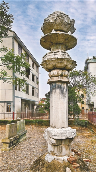 | 法隆寺经幢 法隆寺经幢建于唐大中十一年(857年)。其寺已损毁无存,仅存经幢一座,俗称金钱寺经幢。经幢平面呈八角形,通高6.3米,制作规整,造型独特,通体雕刻极为精致,充分体现了唐代江南石刻艺术的水平。2006年5月25日,法隆寺经幢被国务院公布为第六批全国重点文物保护单位。 |