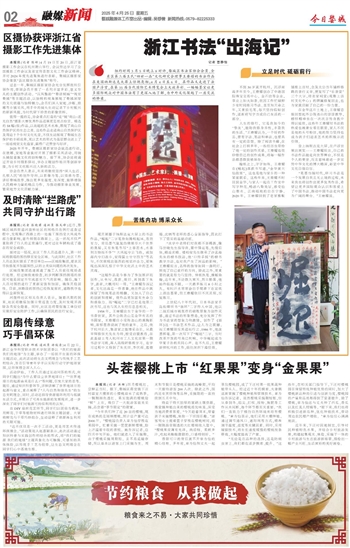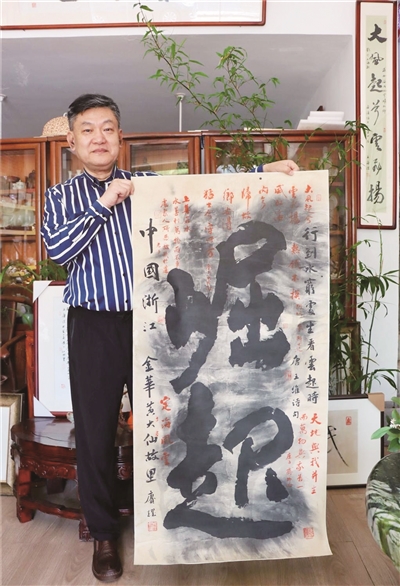 翰纸之上,字字如珠。王赓耀在《崛起》落款书写道,“金华黄大仙故里”,这也是他与家乡的一种紧密联系。这些年来,王赓耀不时回到金华,与家人一起在工作室中写字种花,畅游八婺美景,感受仙山婺水、江南福地的自在宁静。2020年,王赓耀回到了老家雅畈镇雅上店村,念及太公当年铺桥修路的善行义举,便复写了“乐善堂”三个大字,将老家祠堂(现雅上店村文化中心)的牌匾修复回去,也为家族贡献了自己的一份力量。