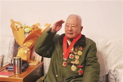 孔宪德喜欢坐在沙发上晒太阳。阳光穿过树木,在他布满皱纹的脸上投下斑驳的光影。家人们常说,每一次聊起“抗战”的话题,他总是目光如炬,似乎有说不完的话,时常还要哼唱几曲,等到别人劝说才肯停下。这股倔强的劲儿,恍如当年那个扛着枪奔赴战场的16岁少年。